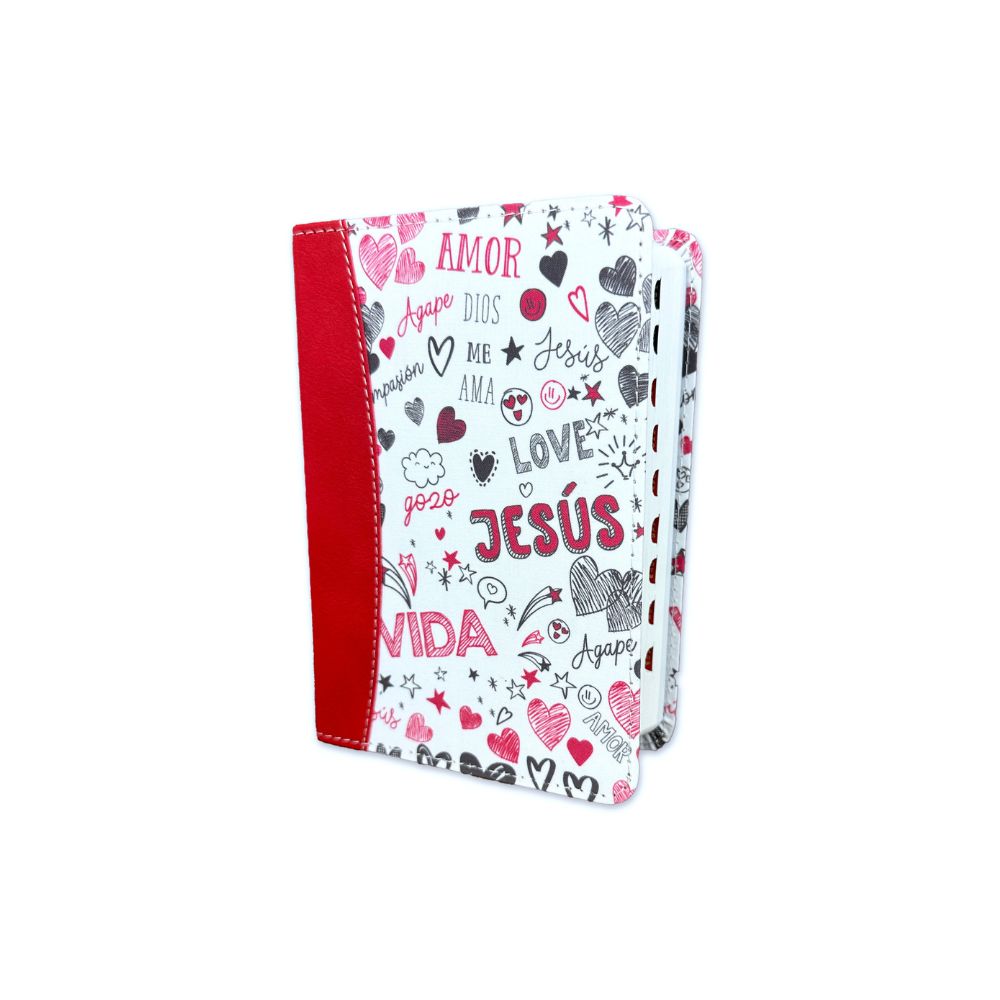 Biblia de Bolsillo RV1960 imit y tela impresa con índice – palabras de vida amor rojo