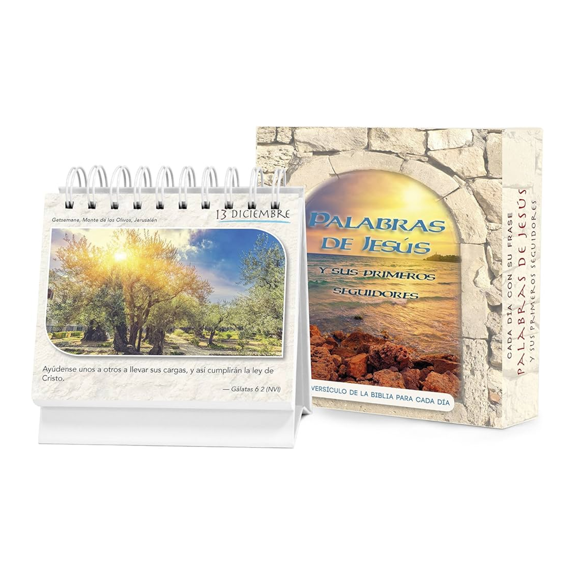 Una cita de inspiración de las palabras de Jesús y algunos de Sus primeros seguidores por cada día del año. Un calendario perpetuo que se puede usar una y otra vez. Ofrece fotografías de lugares mencionados en el Nuevo Testamento