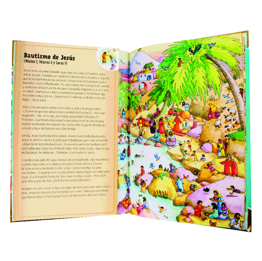 De forma lúdica e interactiva, despierta la curiosidad del pequeño lector, contribuyendo al aprendizaje de la Palabra de Dios.