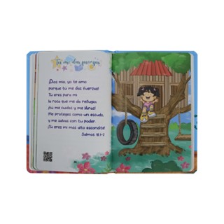 Un hermoso libro lleno de color, con simpáticas ilustraciones y 52 oraciones tomadas directamente del texto bíblico de la traducción en Lenguaje Actual. Cada página tiene un código QR con el audio de la oración, para que los chicos puedan escucharlas, repetirlas y aprenderlas.